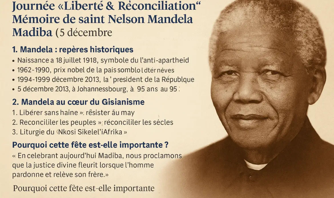 « En célébrant aujourd’hui Madiba, nous proclamons que la justice divine fleurit lorsque l’homme pardonne et relève son frère. » — Liturgie du 5 décembre, GISE